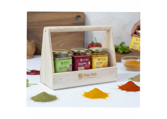 This Hilans Spice Trio is a premium collection featuring authentic Coriander, Red Chilli, and Haldi (Turmeric) powders. Sourced directly from the farmers of Uttarakhand, these spices are chemical-free and packaged in a rustic wooden caddy. This Government of Uttarakhand initiative ensures top-notch purity while directly empowering rural Himalayan households.